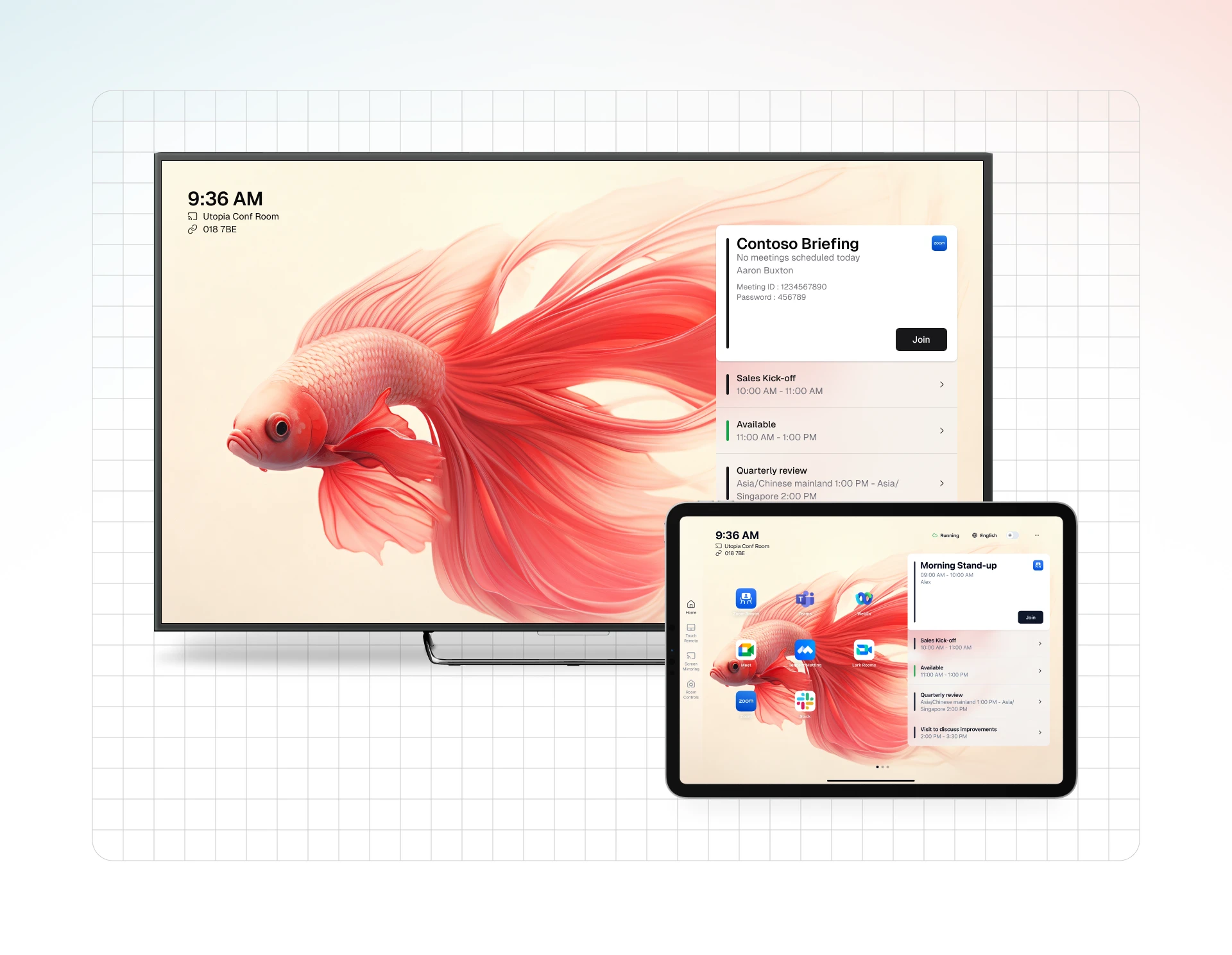After deploying VCA, users can switch to the target platform with one click in the Controller. VCA will simultaneously switch the applications on the host and tablet. If it is a scheduled meeting, the meeting will automatically appear on the screen in the corresponding room. Users only need to click the "Join" button, and VCA automatically handles the cross-platform meeting.